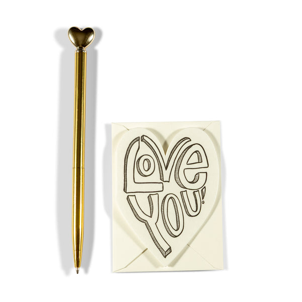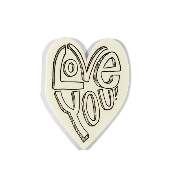 This heart-shaped mini card features a hand-drawn “Love You!” message in playful black lettering—perfect for slipping into a lunchbox, leaving on a pillow, or attaching to a thoughtful gift. It’s a sweet surprise for Valentine’s Day, anniversaries, or just because. Each card comes with a petite envelope (2.625” x 3.625”) and is small enough to tuck into anything—but too small to mail.