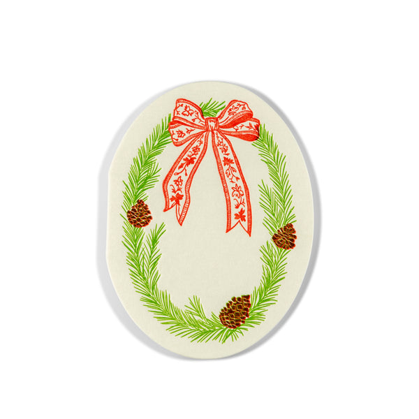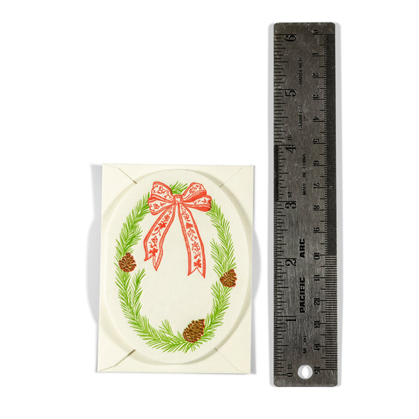 Our mini enclosure cards are the perfect finishing touch—small enough to tuck into a gift bag, tie onto a present, or slip inside a stocking. Each card includes a petite envelope (2.625” x 3.625”) and is too tiny to mail on its own, making it ideal as an enclosure card. This festive design features a classic pine wreath adorned with a patterned red ribbon and pinecones—an elegant and cozy way to share some holiday cheer.