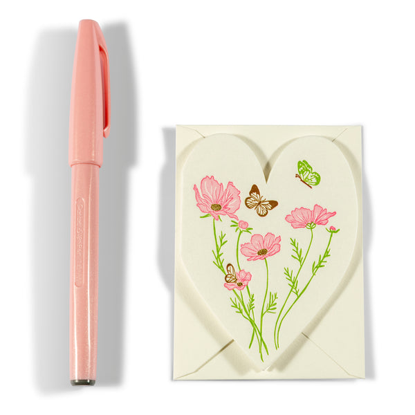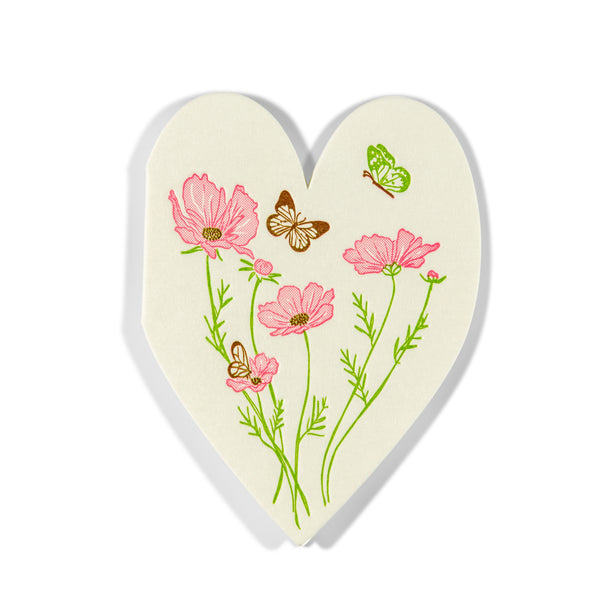 Our mini enclosure cards are a sweet way to add a thoughtful touch—perfect for tucking into gifts, bouquets, lunch boxes, or surprise notes. Each one comes with a petite envelope (2.625” x 3.625”) and is just the right size for a quick thank-you, love note, or gentle reminder that someone’s on your mind. This heart-shaped design features delicate wildflowers and fluttering butterflies in vibrant pinks and greens—soft, cheerful, and full of charm.