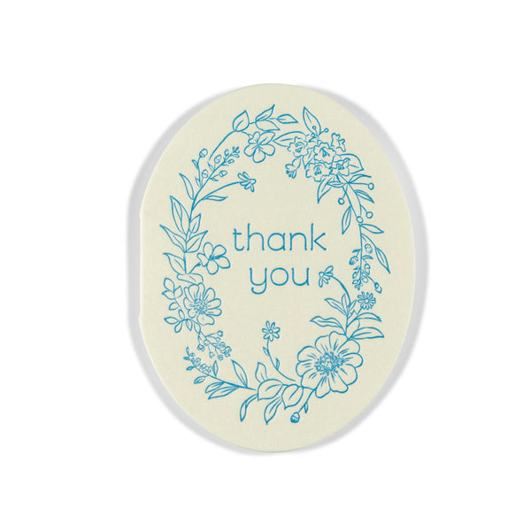 Our mini enclosure cards are the perfect way to share a quick note of appreciation, love, or encouragement. Petite and thoughtful, they’re great as gift enclosures, place cards, or surprise desk notes. Each card comes with a small envelope (2.625” x 3.625”)—too tiny to mail, but just right for making someone’s day. This oval design features a delicate blue floral wreath surrounding a simple, heartfelt "thank you."