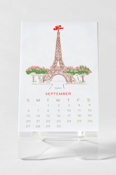 Each image is hand drawn by one of our favorite texans and the owner of Color Box, Rhonda Warren, she looks forward to curating and creating our 12 iconic images each year. To bring these images to life each 4” x 6” page is hand-fed into our antique press by Al our pressman (also a native Texan) for each color to get the unique tactile feel of letterpress printing. We print 2 months up on one sheet, 3 colors per month (sometimes a few more). So our calendar includes 18 passes through the press for inking, then 1 more pass to be die cut perfectly to size. Our calendars are a labor of love that we produce right here in-house.